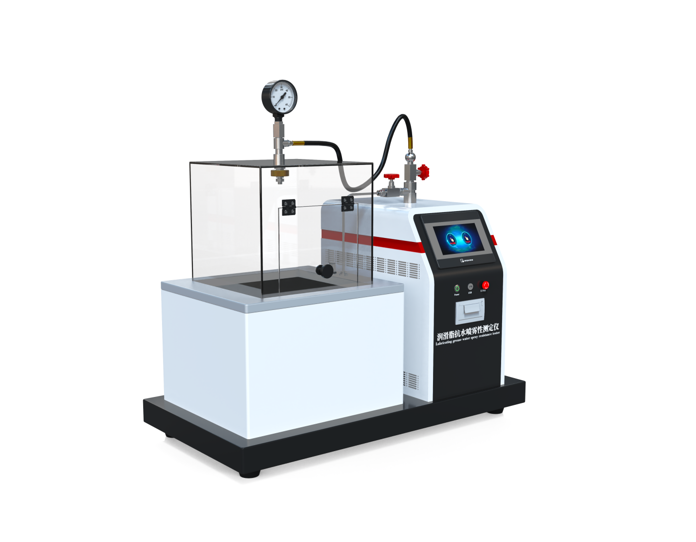 润滑脂抗水喷雾性测定仪是一种用于评估润滑脂在直接水喷雾条件下对金属表面粘附能力的专用仪器。其核心功能是通过模拟实际工况(如潮湿、水雾环境),量化润滑脂在规定时间内被水喷雾冲出的流失量,从而判断其抗水喷雾性能。