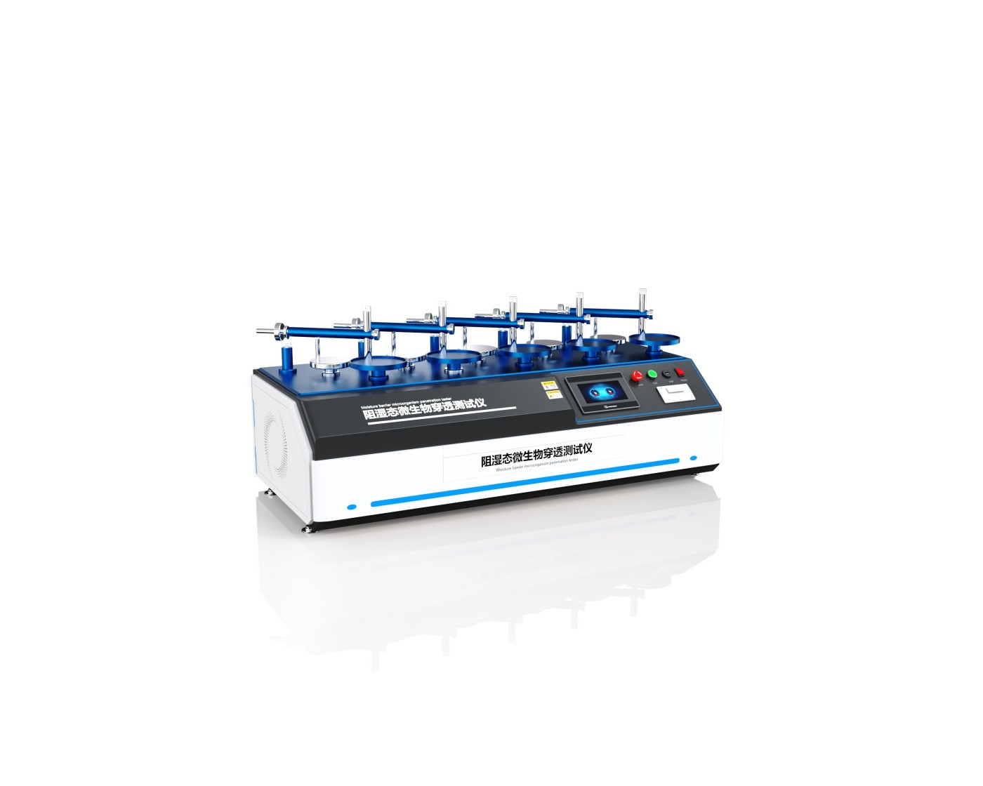 五工位阻湿态微生物穿透测试仪是一种可同时对五个样品进行测试的专业设备,用于评估材料在湿态条件下对微生物的穿透性能。通过模拟实际使用过程中材料可能面临的湿态环境与机械摩擦条件,定量评估材料对微生物(如细菌、霉菌等)的阻隔能力。