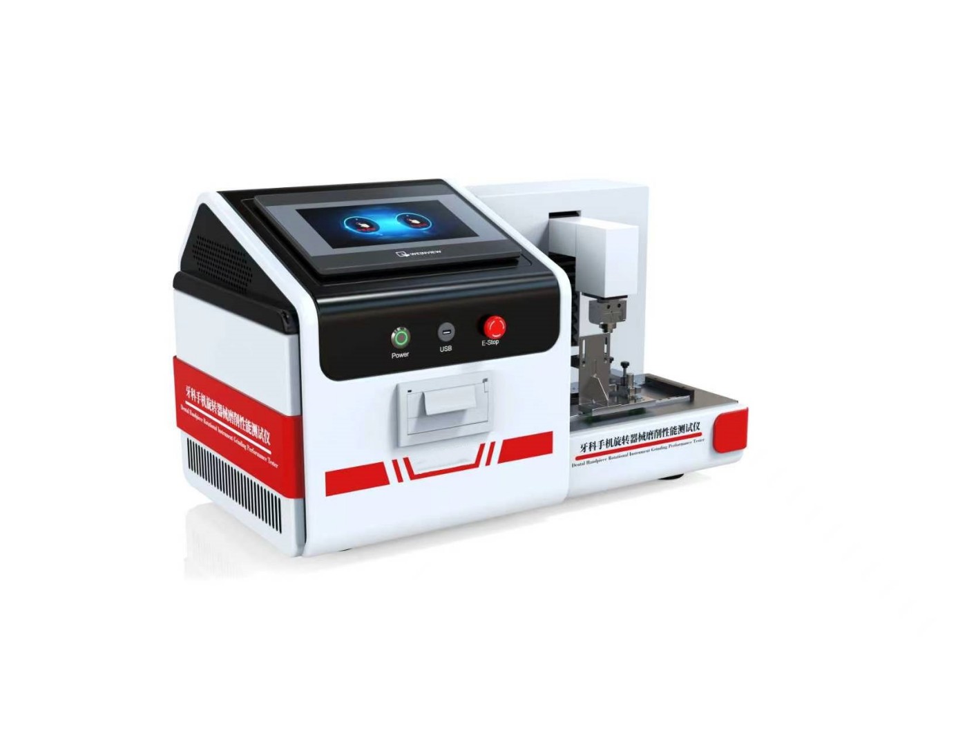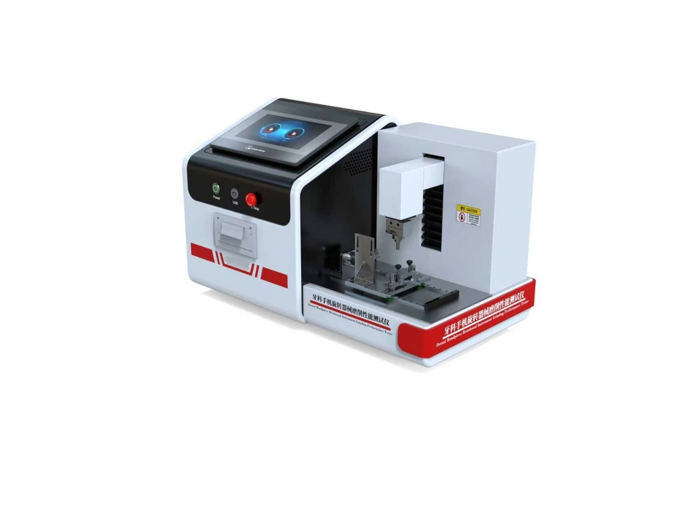 设备通过高速旋转驱动牙科手机,模拟真实切削场景,同时施加可控的加载力,模拟不同切削压力下的性能表现。