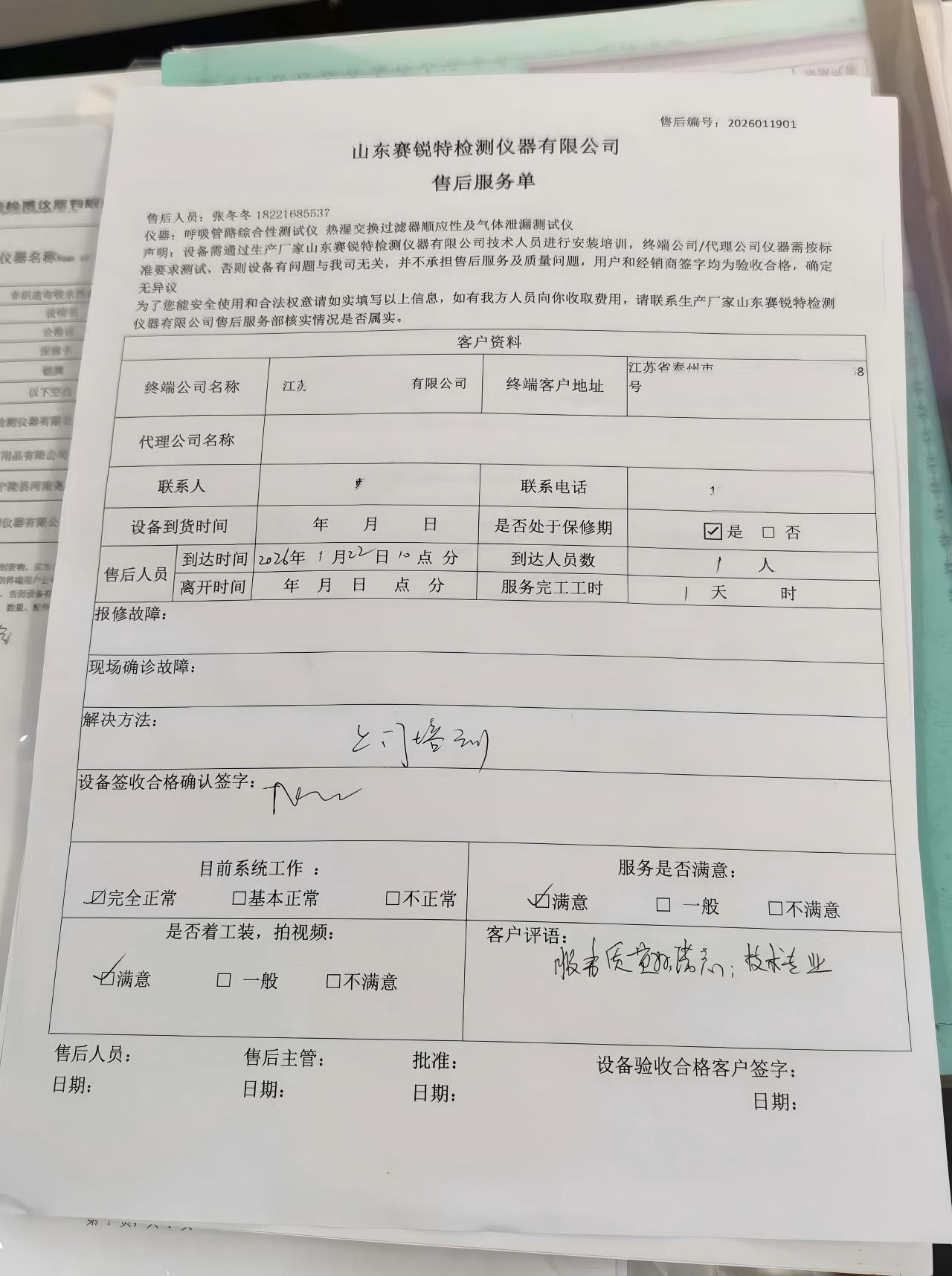 此次上门培训服务高效务实,不仅帮助江苏某某公司参训人员快速掌握了呼吸管lu综合性测试仪的操作方法,也进一步提升了客户团队的检测专业能力。培训结束后,江苏某某公司对此次培训效果给予了充分肯定,对山东赛锐特专业的技术水平和贴心的服务态度表示认可。双方也通过此次培训合作,进一步加深了沟通了解,夯实了后续协同发展的基础。未来,山东赛锐特将继续坚守服务初心,依托专业技术优势,为全国各地客户提供更优质、便捷的技术培训与售后服务,助力各行业客户提升质量管控水平。